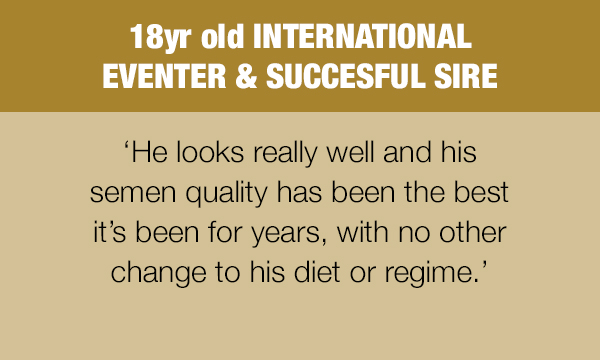 Fertility for Stallions has gone through a four year development programme, which has included field trials across all Performance Horse disciplines, Racing and Showing. We have been thrilled that truly World Class stallions have been involved in those trials, and the benefits reported back to us.