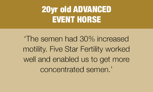 In addition to field trials, we have been delighted to work with Tullis Matson and the team at Stallion A.I. Services, where laboratory trials, analyzing like for like data, has shown the benefit of Five Star Fertility for all stallions.