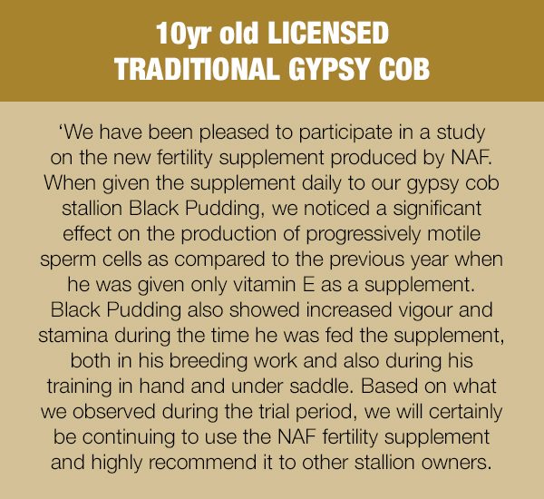 NAF have formulated an innovative nutraceutical supplement designed to support breeding stallions throughout their stud duties, help maintain their condition and improve their performance.