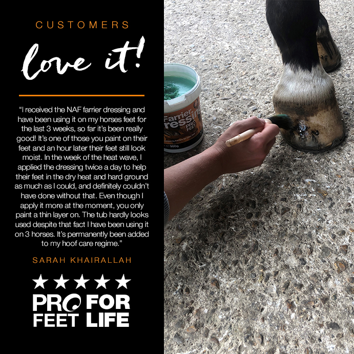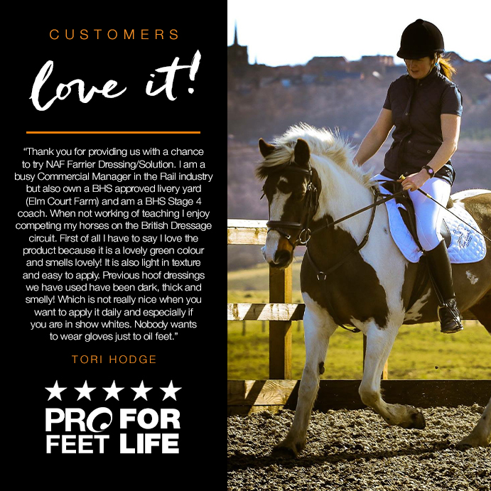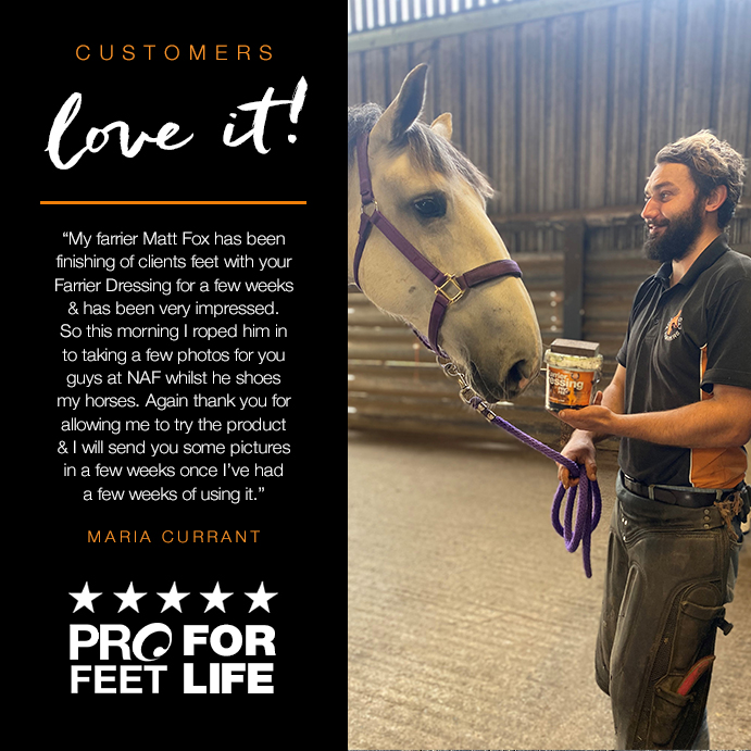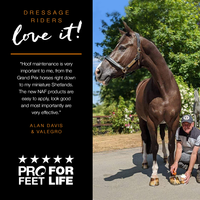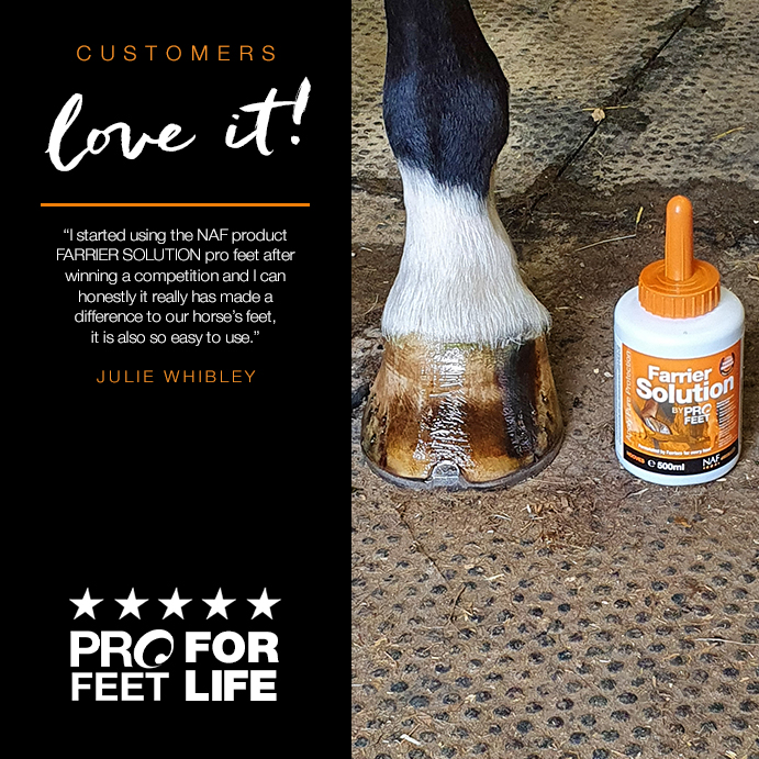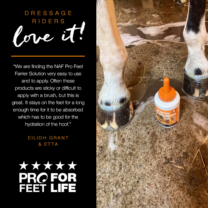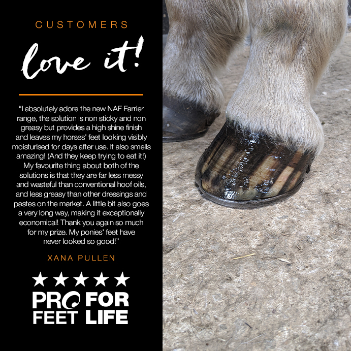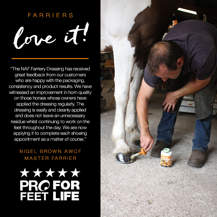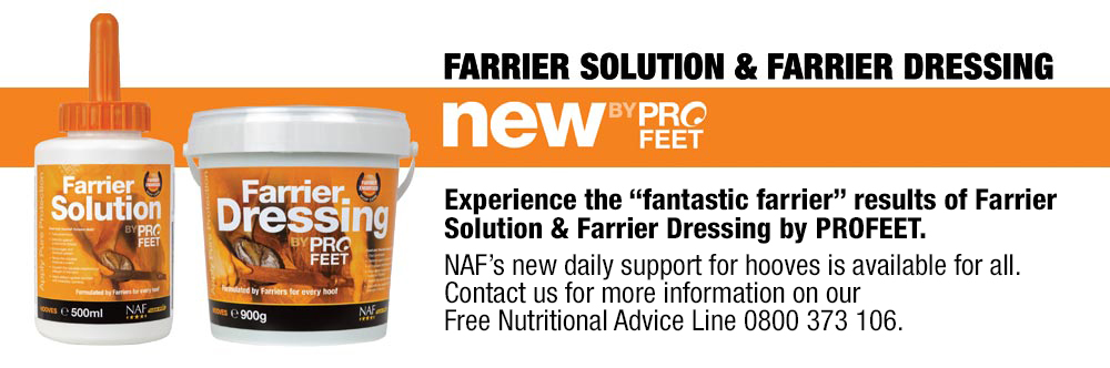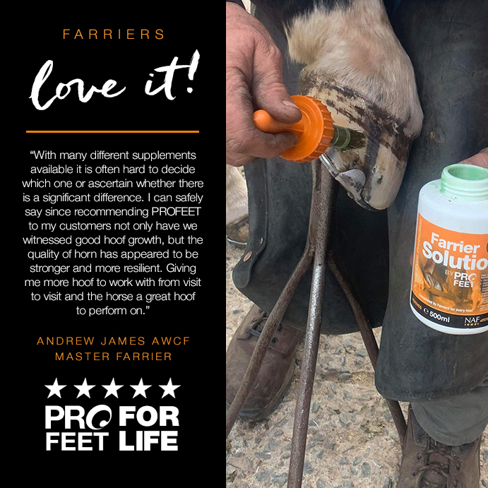 “We are delighted to be working with NAF and are now supplying the PROFEET range to our customers. PROFEET is a well-known name in hoof care and we are now able to offer their benefits to our farrier base to support their shoeing process. We are looking forward to seeing where this relationship takes our Hoof Care & Soundness brand, and will enjoy the input of nutritional experts into modern hoof care systems.”