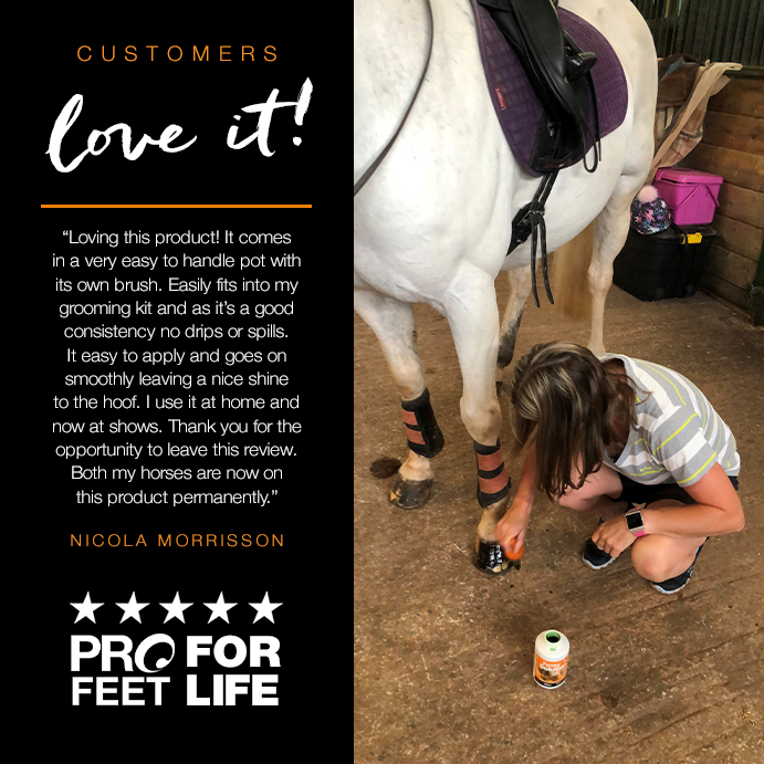 Regular farrier visits are necessary in order to ensure their hooves are balanced and well attended to, but good nutrition both internally and externally ensures a healthy hoof supports their body weight and overall performance.