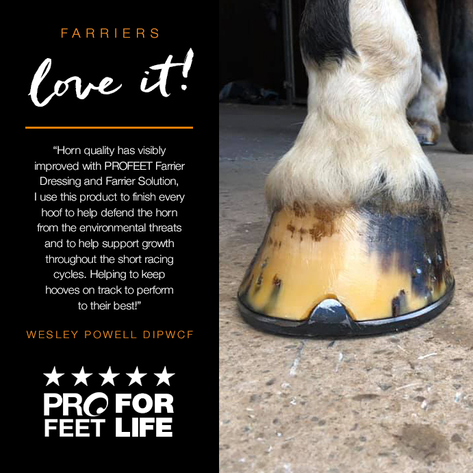 Experience the “fantastic farrier” results of Farrier Solution & Farrier Dressing by PROFEET.