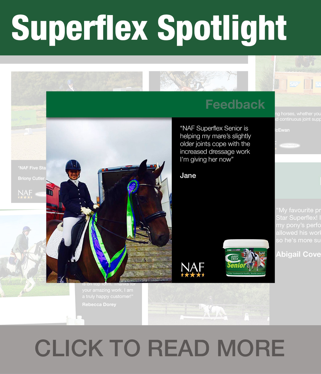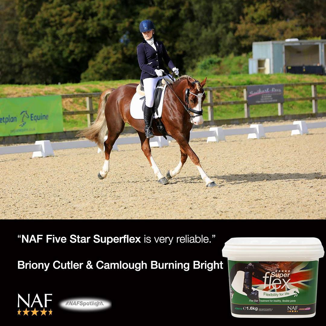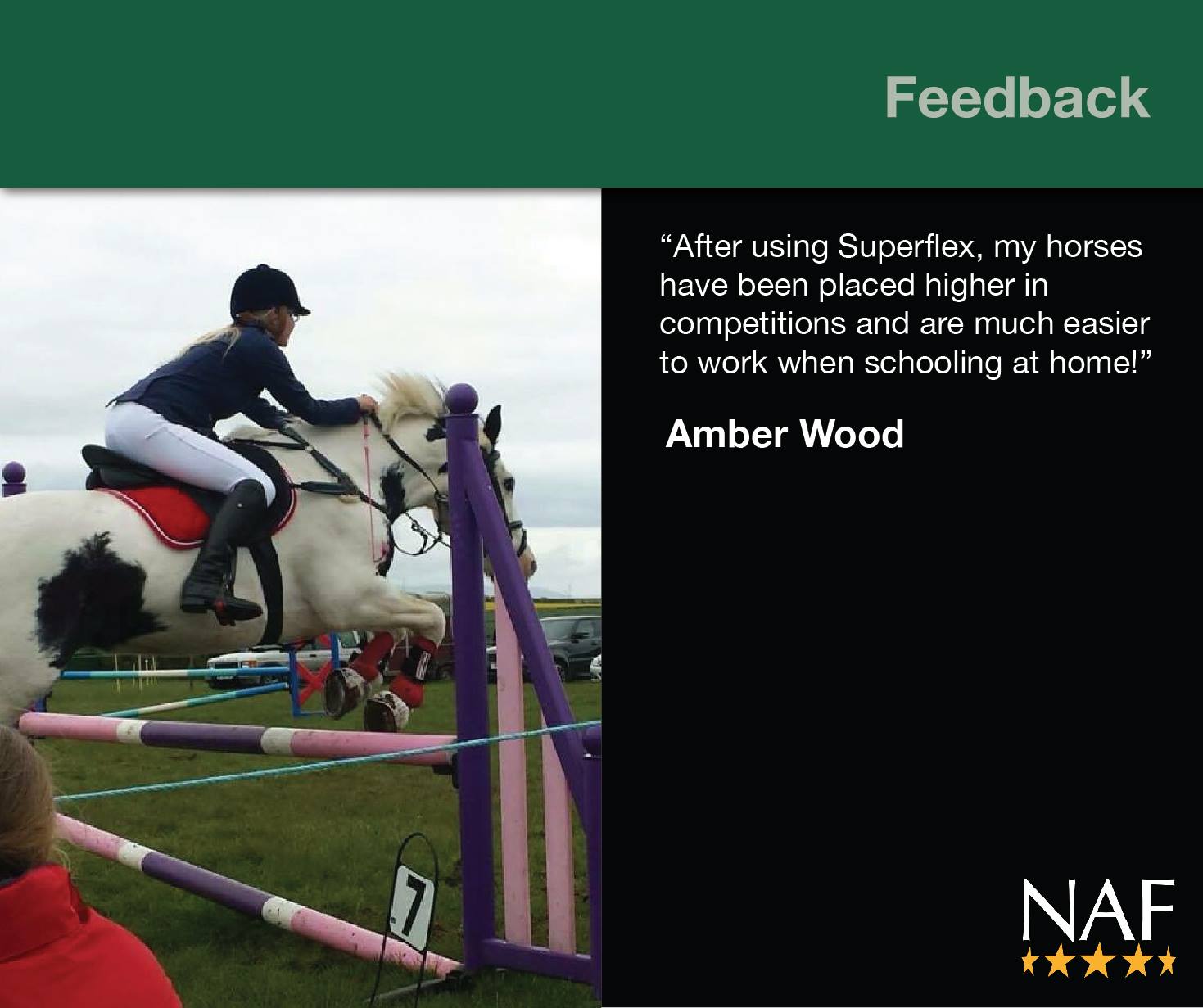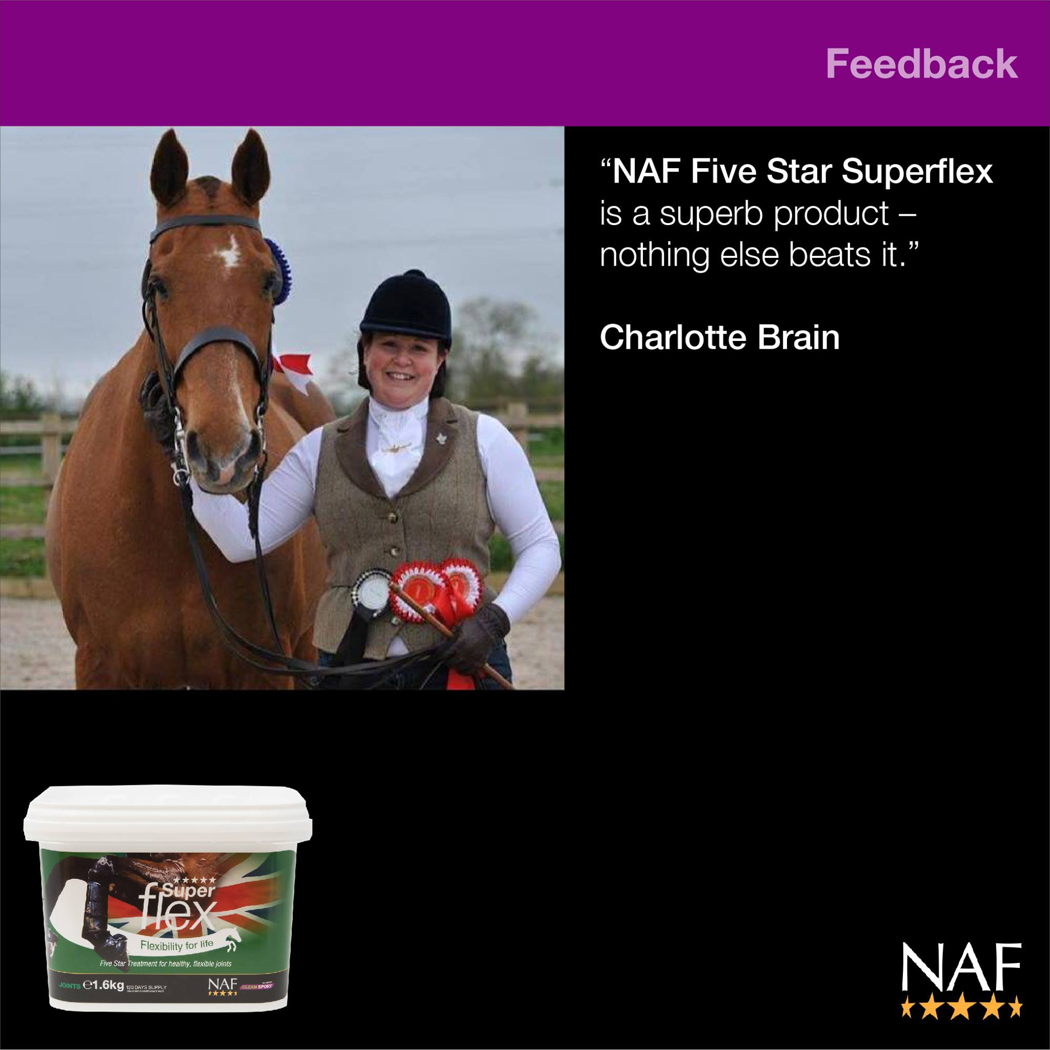 NAF Five Star Superflex provides a unique synergistic blend of the key joint support nutrients, glucosamine sulphate, MSM, chondroitin, H.A and unique botanical antioxidants, to feed their joints and nurture soundness. Recommended for all horses and ponies from weekend hackers to performance horses.