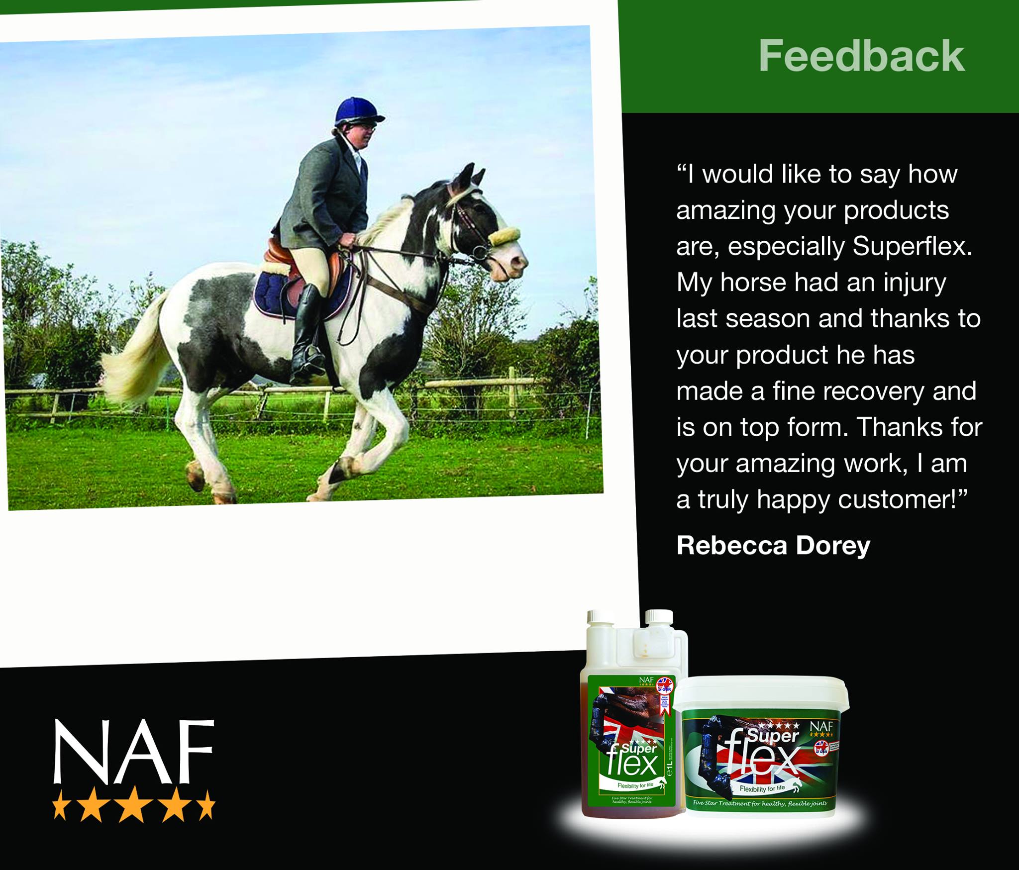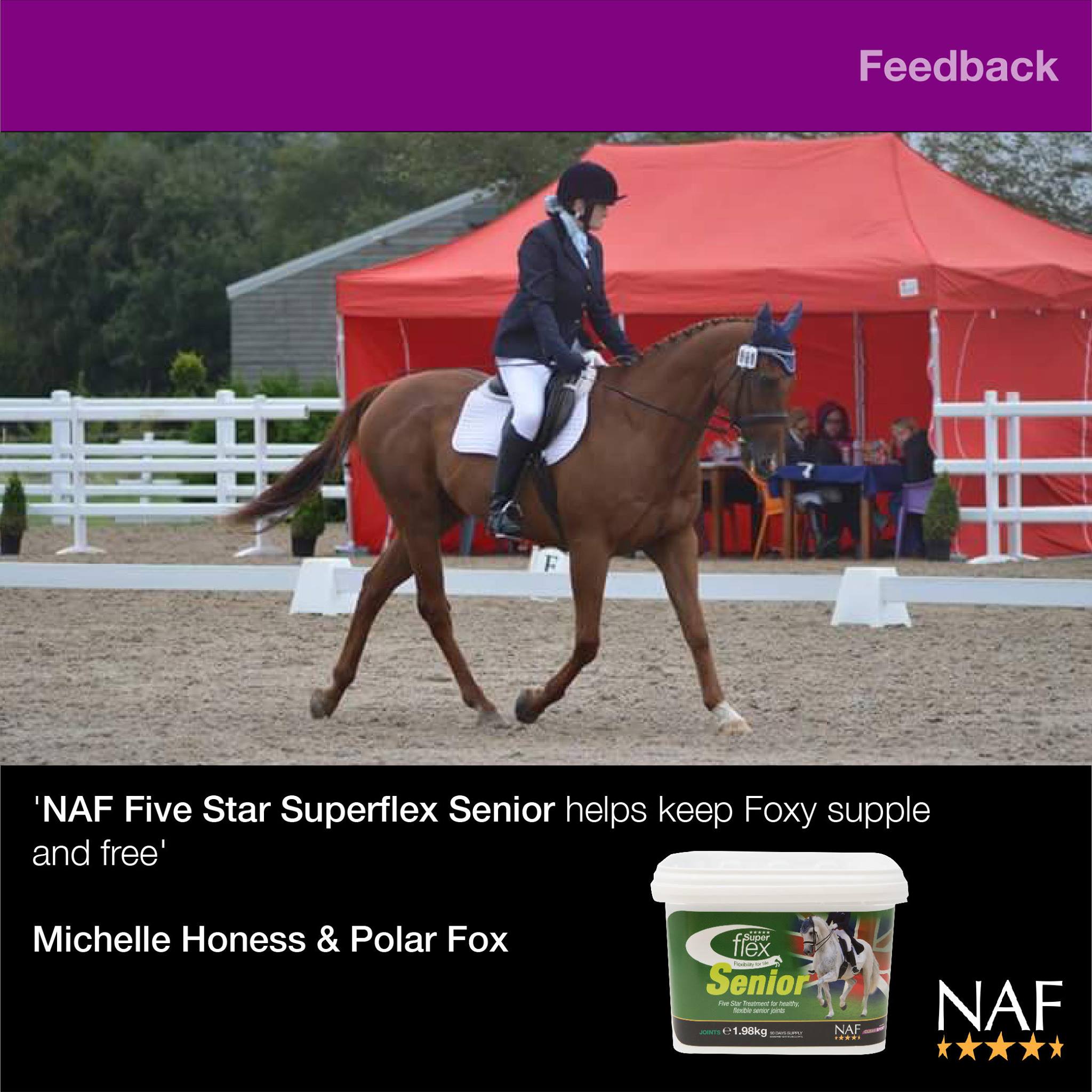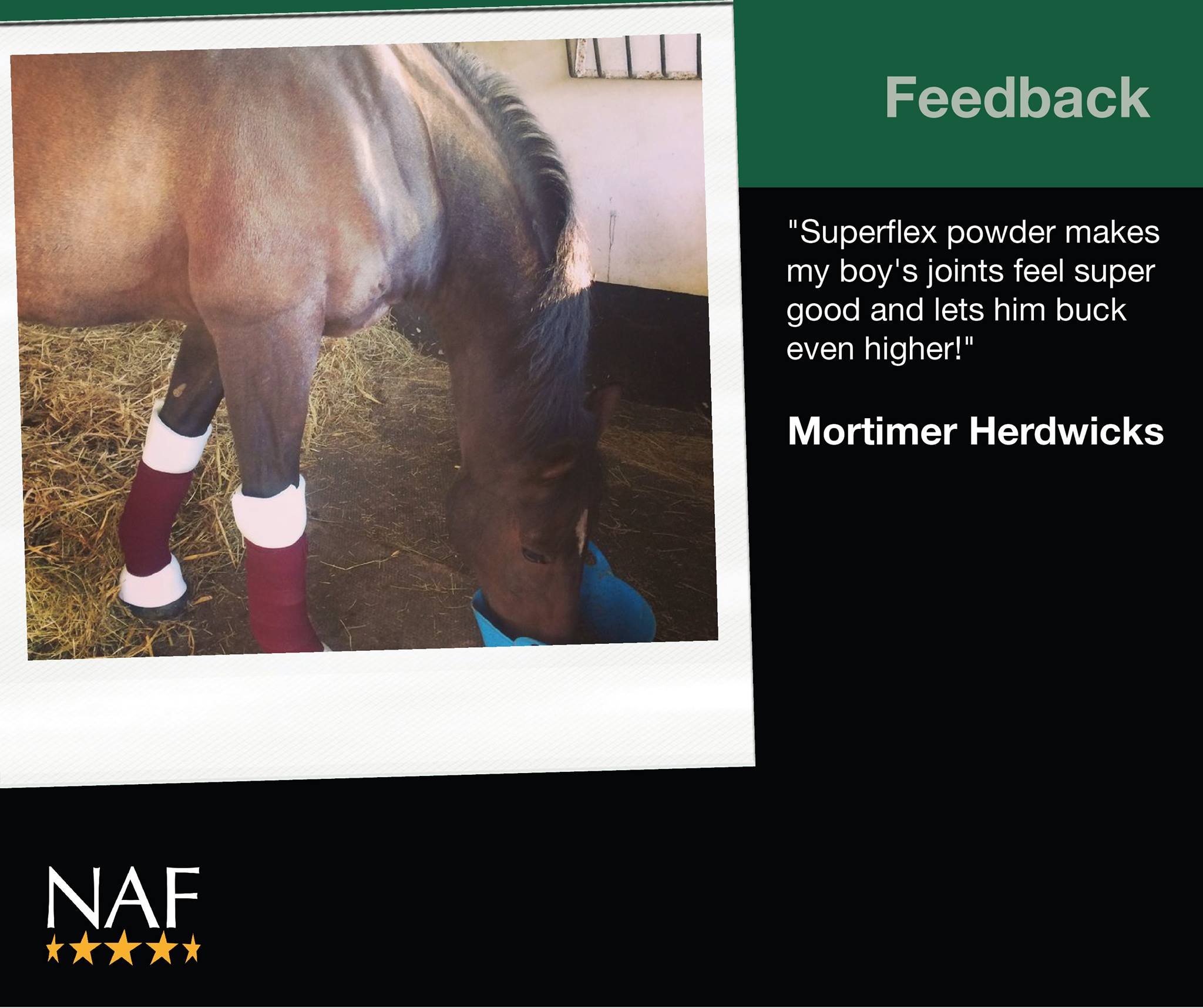 NAF Five Star Superflex provides a unique synergistic blend of the key joint support nutrients, glucosamine sulphate, MSM, chondroitin, H.A and unique botanical antioxidants, to feed their joints and nurture soundness. Recommended for all horses and ponies from weekend hackers to performance horses.