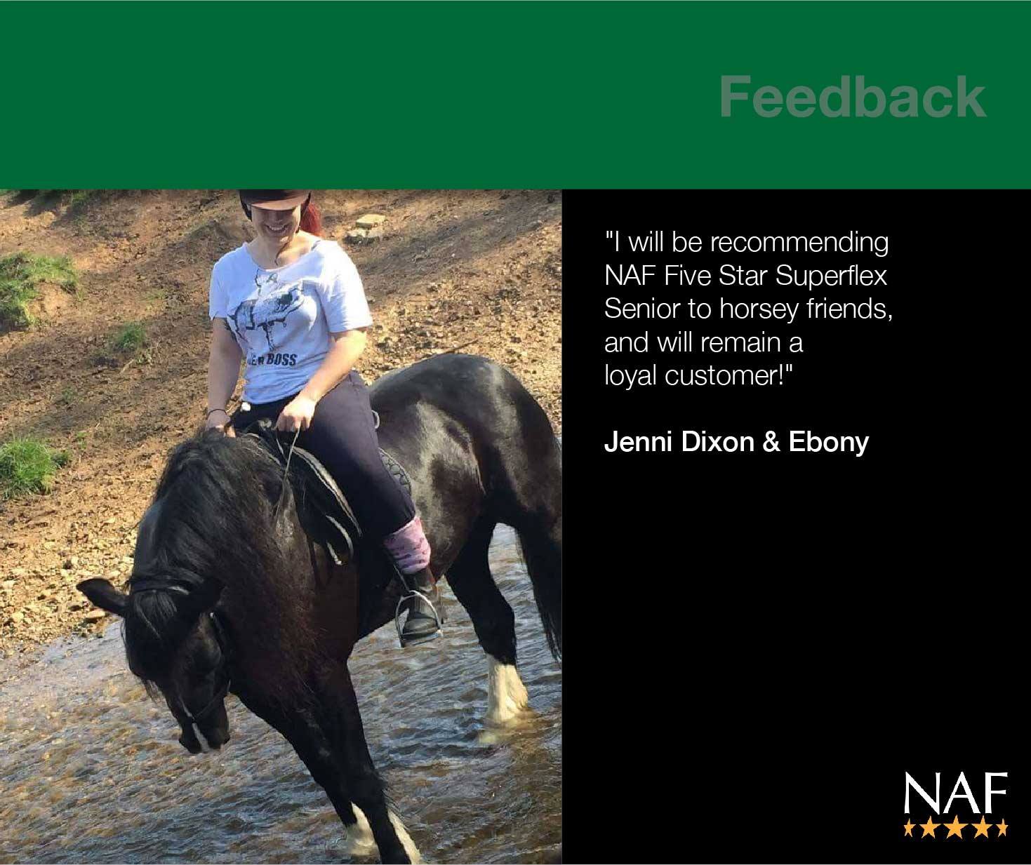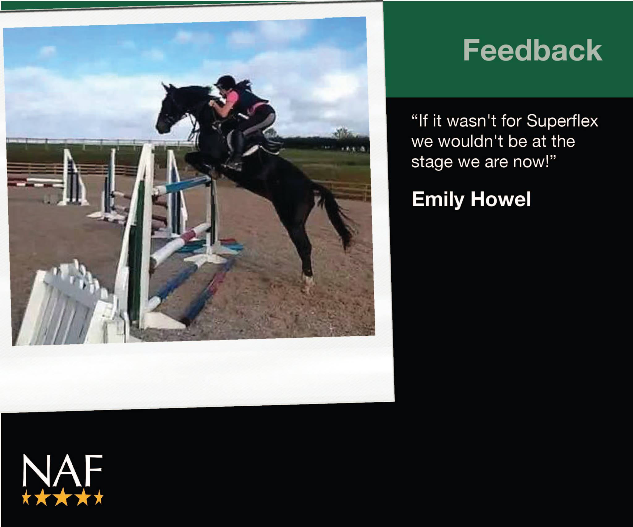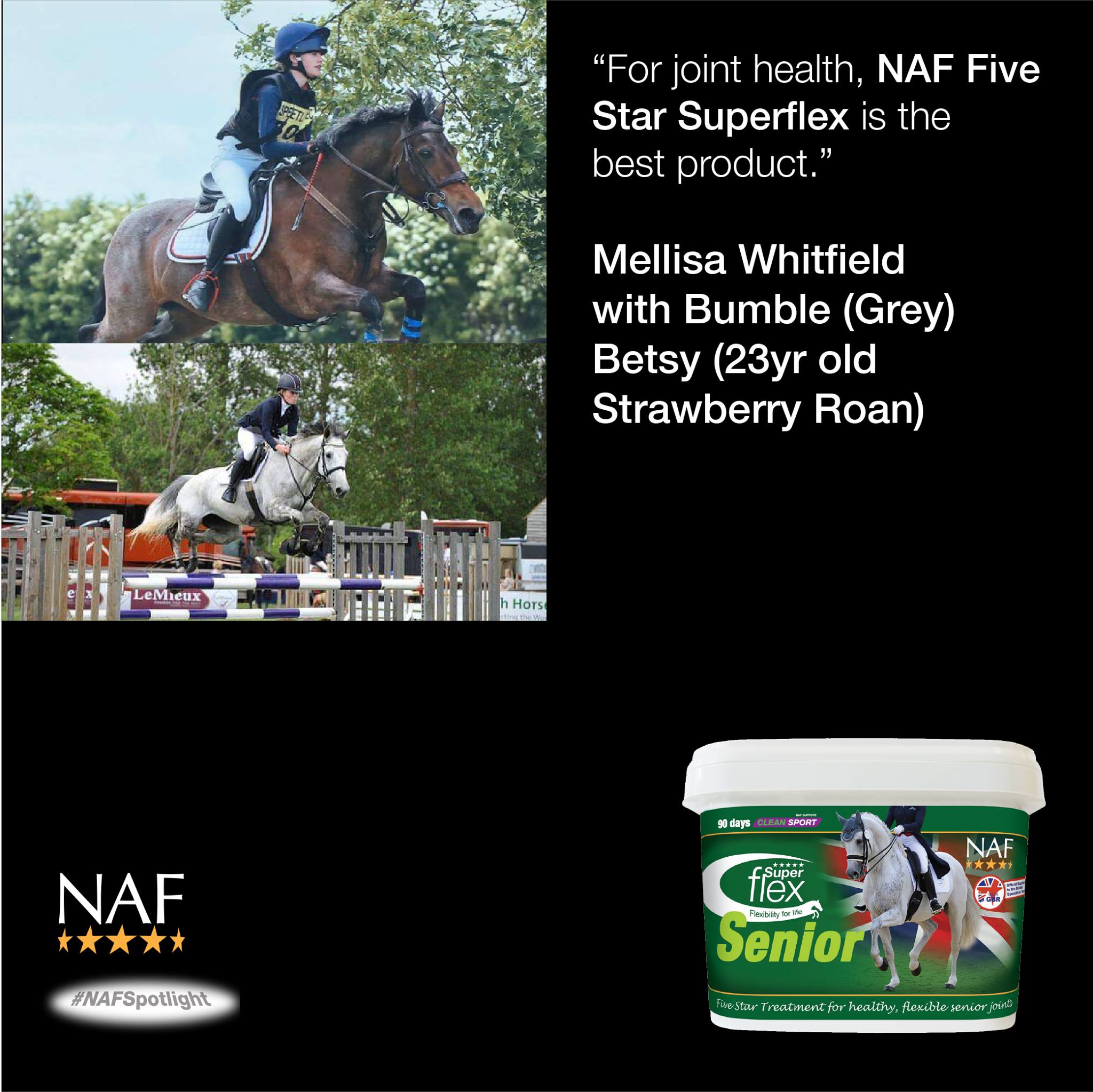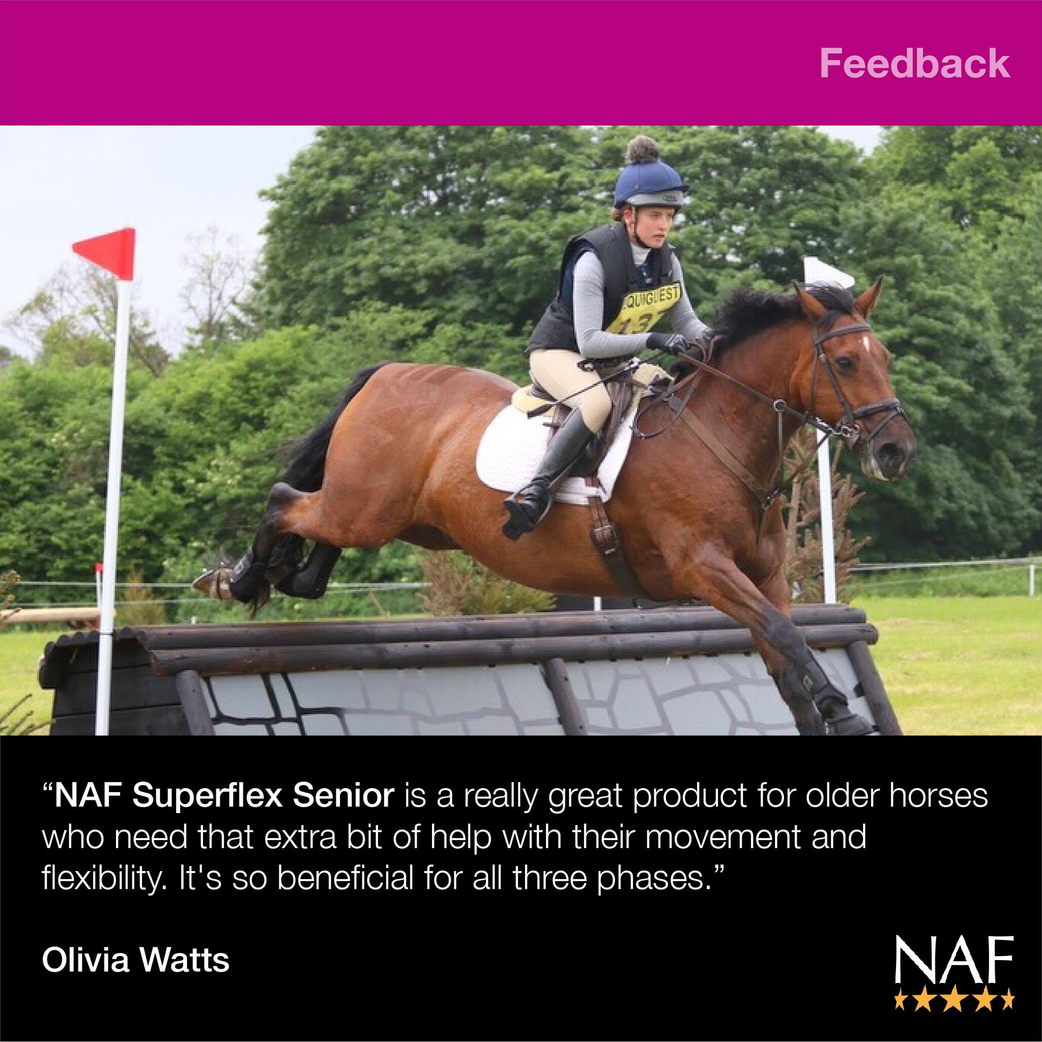 NAF Five Star Superflex provides a unique synergistic blend of the key joint support nutrients, glucosamine sulphate, MSM, chondroitin, H.A and unique botanical antioxidants, to feed their joints and nurture soundness. Recommended for all horses and ponies from weekend hackers to performance horses.