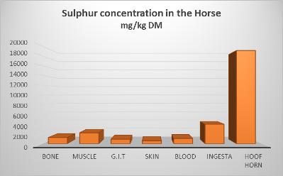 However, it is sulphur's role in the hooves that interests us most here, and while the largest store of sulphur by mass is in the muscles, the highest concentration of sulphur is certainly within the hoof horn3 (Fig 2).