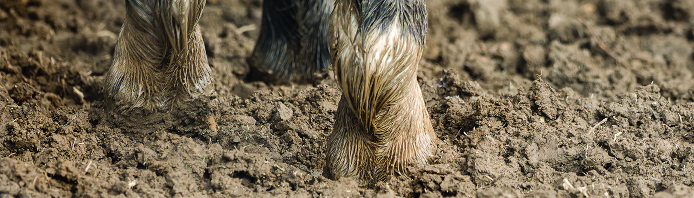 Mud Fever is a bacterial infection of the skin around the lower leg and fetlock caused principally by the bacterium, Dermatophillus congolensis. On un-rugged animals it may also be seen across the back where it is referred to as Rain Scald. Ordinarily the bacteria live happily on skin without any issue. However any break in the skin allows the bacteria to enter then dermatitis sets in. Mud fever is seen as painful scabs and matted hair, leading to lameness. Prolonged wetting from muddy conditions in the field can weaken skin allowing entry; but so too can abrasive bedding, and any minor nicks and cuts. Check legs daily and quickly treat any minor abrasion with wound cream and an effective barrier cream.