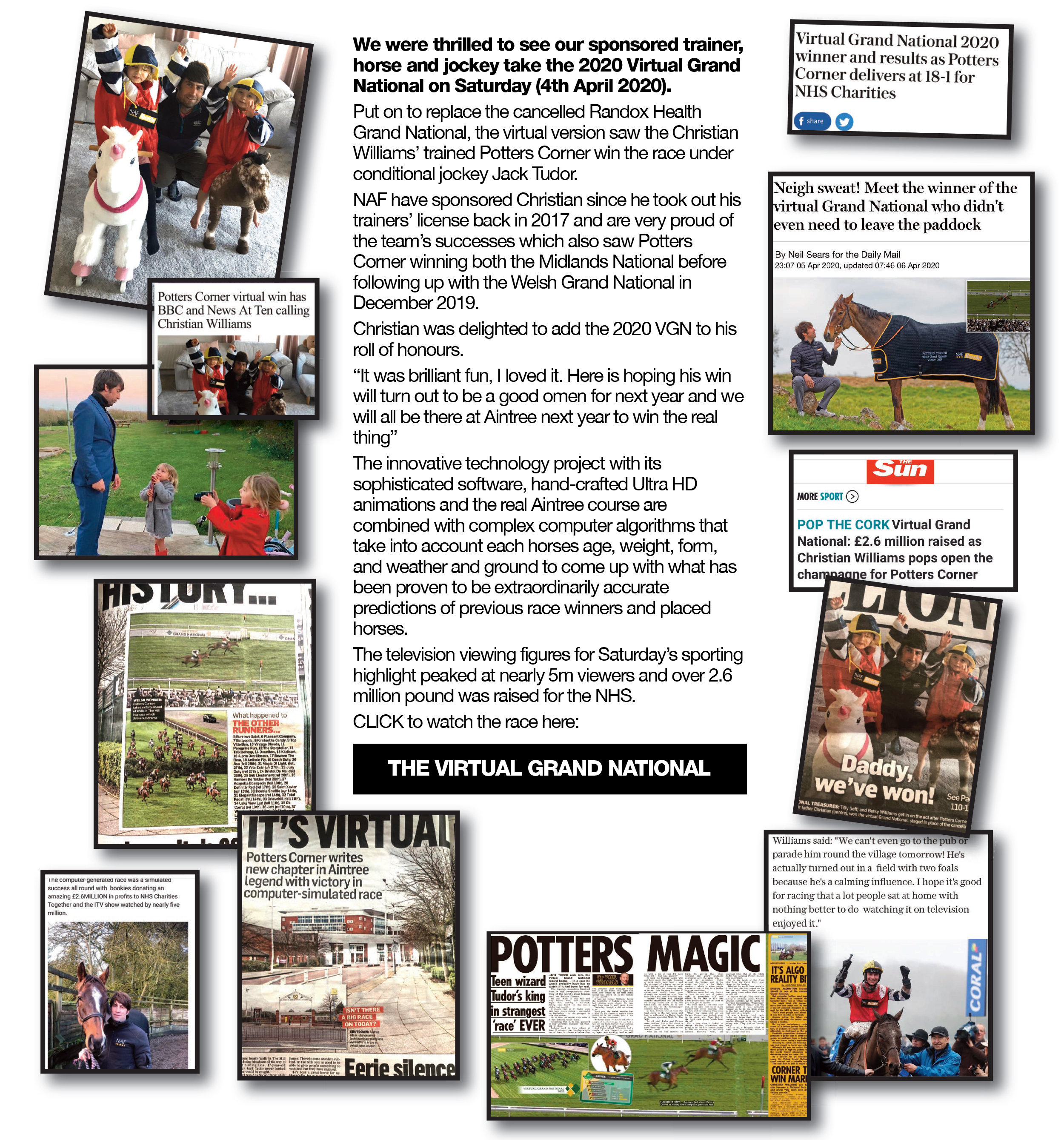 NAF have sponsored Christian since he took out his trainers’ license back in 2017 and are very proud of the team’s successes which also saw Potters Corner winning both the Midlands National before following up with the Welsh Grand National in December 2019.